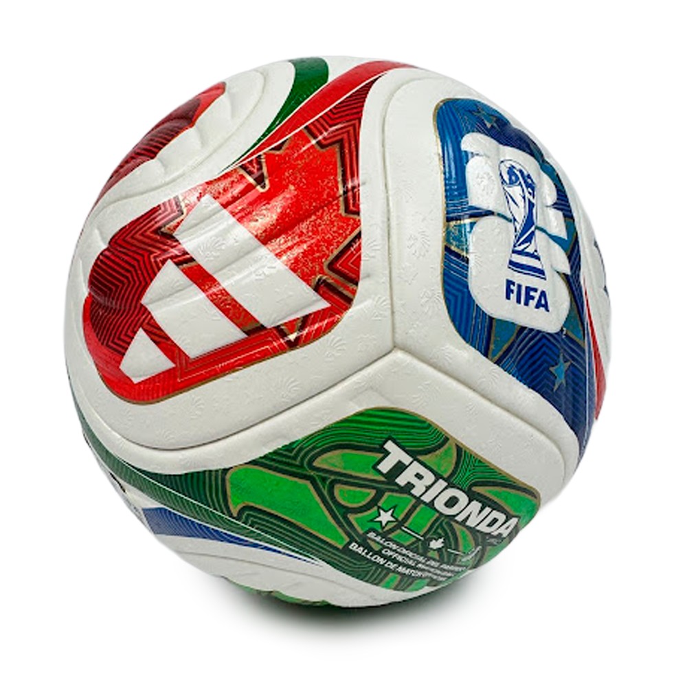 bola adidas copa do mundo trionda pró 2026 branco/verde/azul/vermelho é ideal para atletas que buscam o mais alto nível de performance em campo. modelo oficial da copa do mundo fifa 2026, foi projetada com tecnologias de última geração que garantem máxima precisão, controle e aerodinâmica. sua estrutura sem costuras com acabamento térmico proporciona toque uniforme e estabilidade em voo. o visual com as cores branco, verde, azul e vermelho representa energia, diversidade e a grandiosidade do torneio mundial.