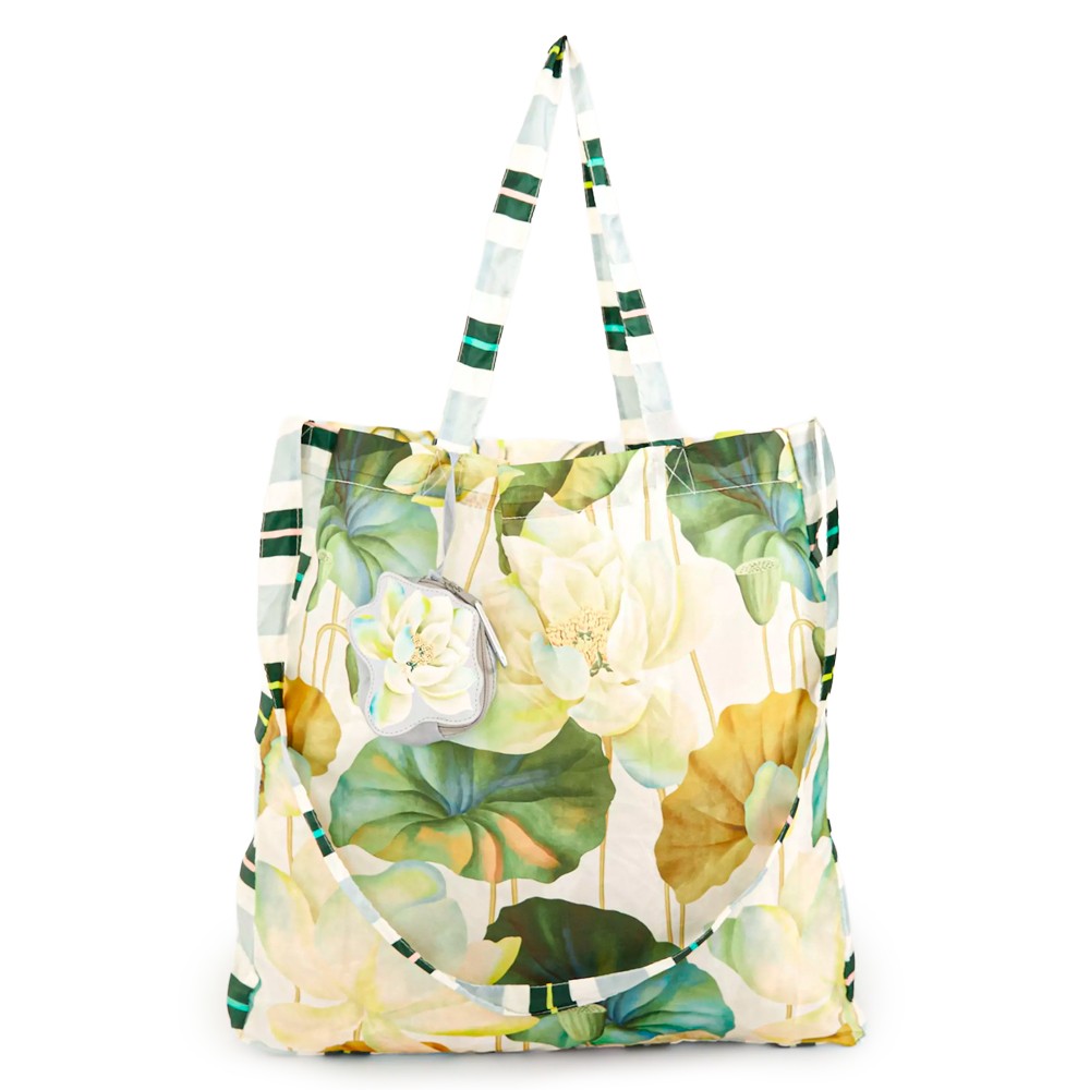 Bolsinha Farm Me Leva Flor de Lotus Bege Verde