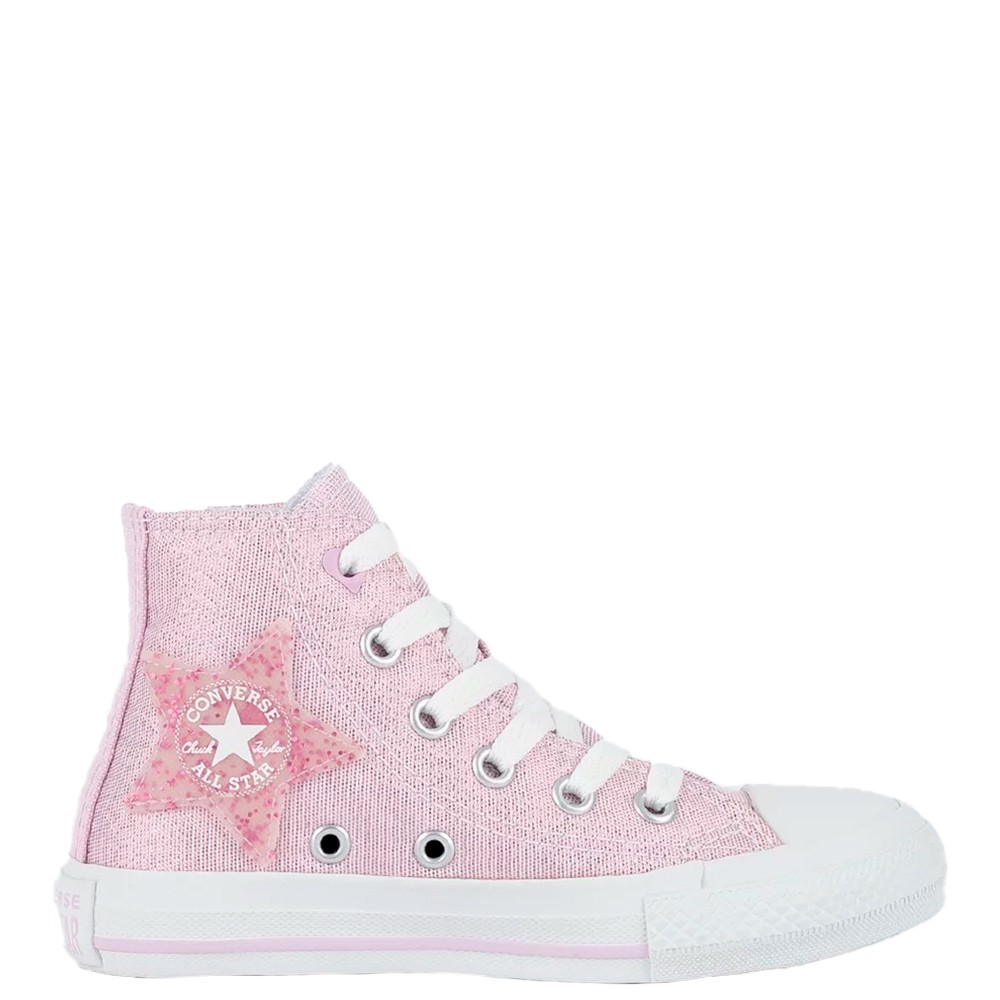 O clássico Chuck Taylor All Star na versão kids e em cores sazonais, é confeccionado em tecido canvas de algodão tipo lona, possui costuras duplas, uma tira de tecido no calcanhar que proporciona maior suporte ao tênis, forro interno acolchoado para maior conforto e dois ilhoses laterais para uma transpiração adequada aos pés. O Patch Logo com assinatura Converse Chuck Taylor All Star é aplicado na parte interna dos canos, enquanto o logo Converse All Star é aplicado na heeltab do calcanhar. O solado vulcanizado garante a aderência adequada ao caminhar.