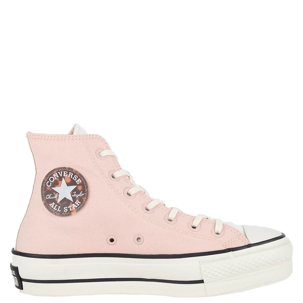 O icônico Converse Chuck Taylor All Star Lift, com seu solado plataforma, com aproximadamente 4 cm de altura, chega na coleção Future Archive Tortoise confeccionado em tecido lona de algodão, com costuras duplas no cabedal e dois ilhoses laterais para uma transpiração adequada. O modelo possui a língua revestida de material sintético brilhante. O Patch Logo com assinatura Chuck Taylor All Star é aplicado na parte interna dos canos do tênis e recebe uma estampa animal print que remete ao casco de tartaruga (Tortoise). Já o logo Converse All Star é aplicado, tradicionalmente, na heeltab do calcanhar.