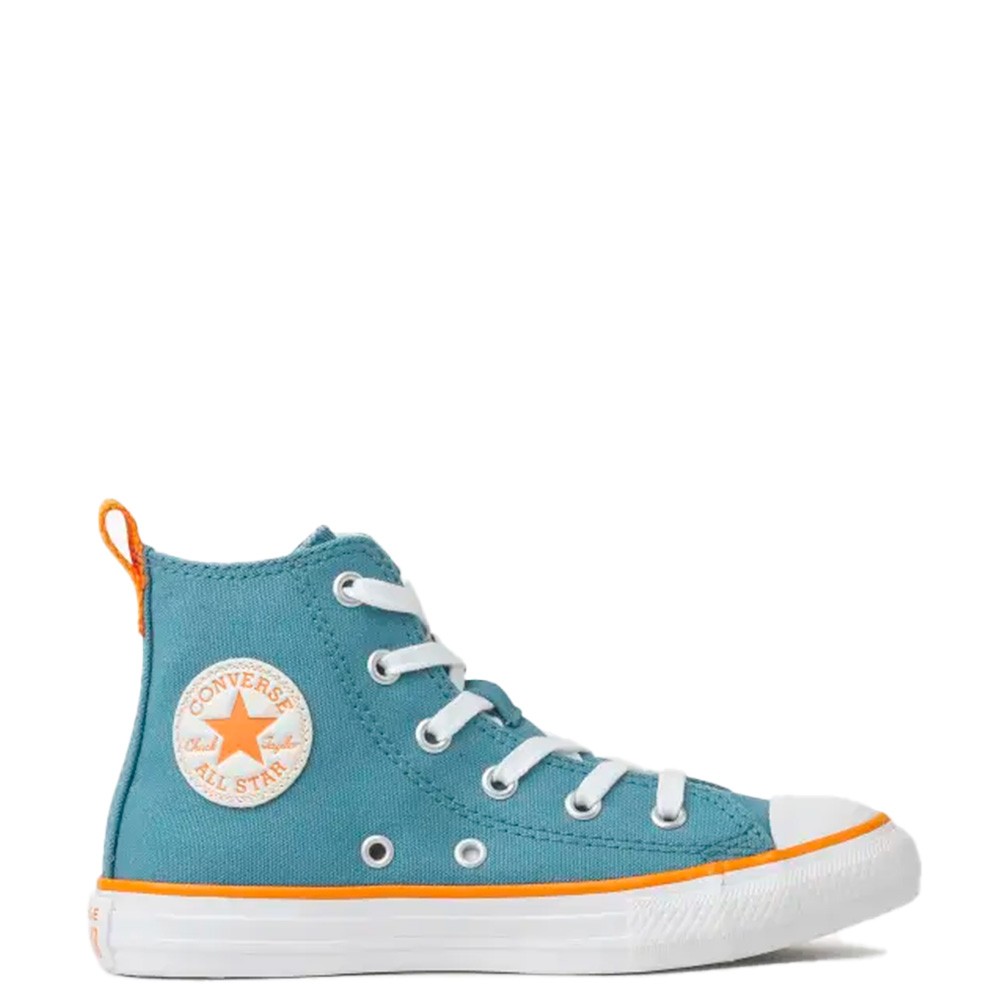 O clássico Chuck Taylor All Star nesta versão kids é confeccionado em tecido canvas de algodão tipo lona e vem nesta edição em cores sazonais. Possui costuras duplas, uma tira de tecido no calcanhar que proporciona maior suporte ao tênis e ilhoses na cor prateada, com dois ilhoses laterais para uma transpiração adequada aos pés. O logo Converse Chuck Taylor All Star é aplicado na parte interna dos canos e na Heeltab do calcanhar. Na parte externa dos canos é aplicado um zíper para vestir de forma mais prática. O solado vulcanizado garante a aderência adequada ao caminhar.