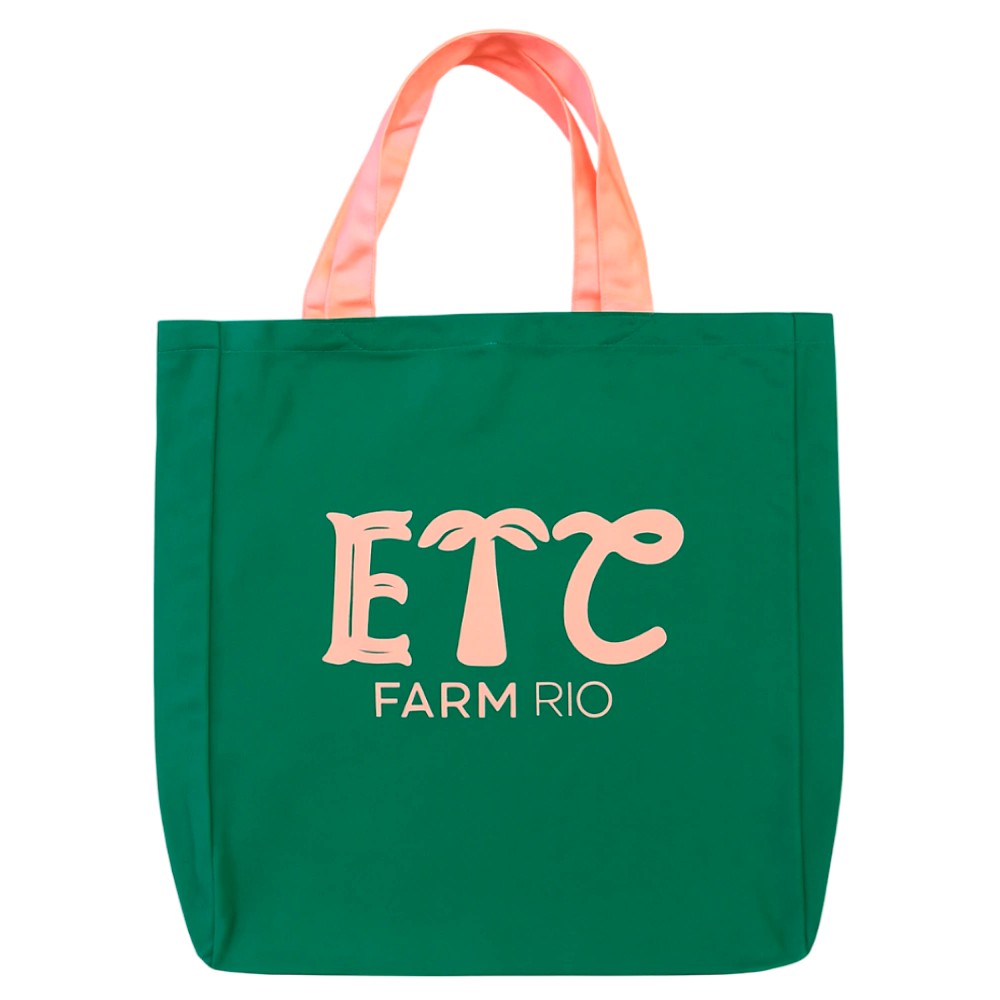 totebag farm praiana coletivo etc verde é ideal para quem deseja unir funcionalidade e estilo em um acessório leve, prático e cheio de personalidade. com formato espaçoso e alças fixas para uso confortável no ombro, é perfeita para acompanhar passeios, praia ou o dia a dia com autenticidade. confeccionada em material resistente, oferece durabilidade e praticidade. o tom verde vibrante e a estampa coletivo etc expressam o DNA criativo e tropical da farm.
